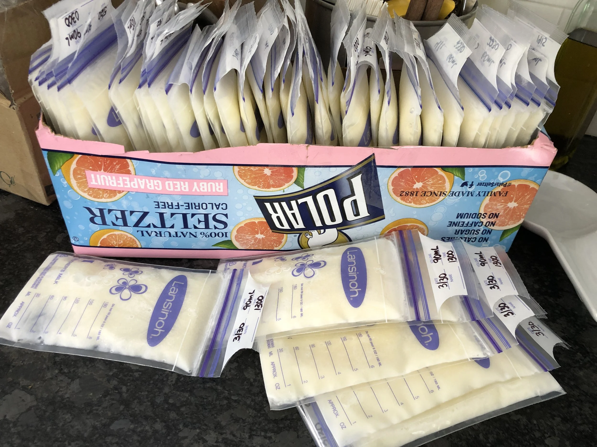On this medication, the ER doctor explained that I should probably “pump and dump” since they weren’t sure what the side effects were for breastfeeding. I am in no way giving anyone any medical advice, but I wish I had consulted a lactation consultant and LactMed before committing to pumping and pouring my milk down the sink for an entire week. In the end, it turns out I didn’t have to get rid of it after all. Nevertheless, I was determined to give her breastmilk no matter what so I called milk banks, texted my friends, and scoured the web all because I wanted to “give her the best.” My dear friend so graciously gave me some of her stash ultimately resulting in a three-hour car ride to transport frozen breastmilk on ice.