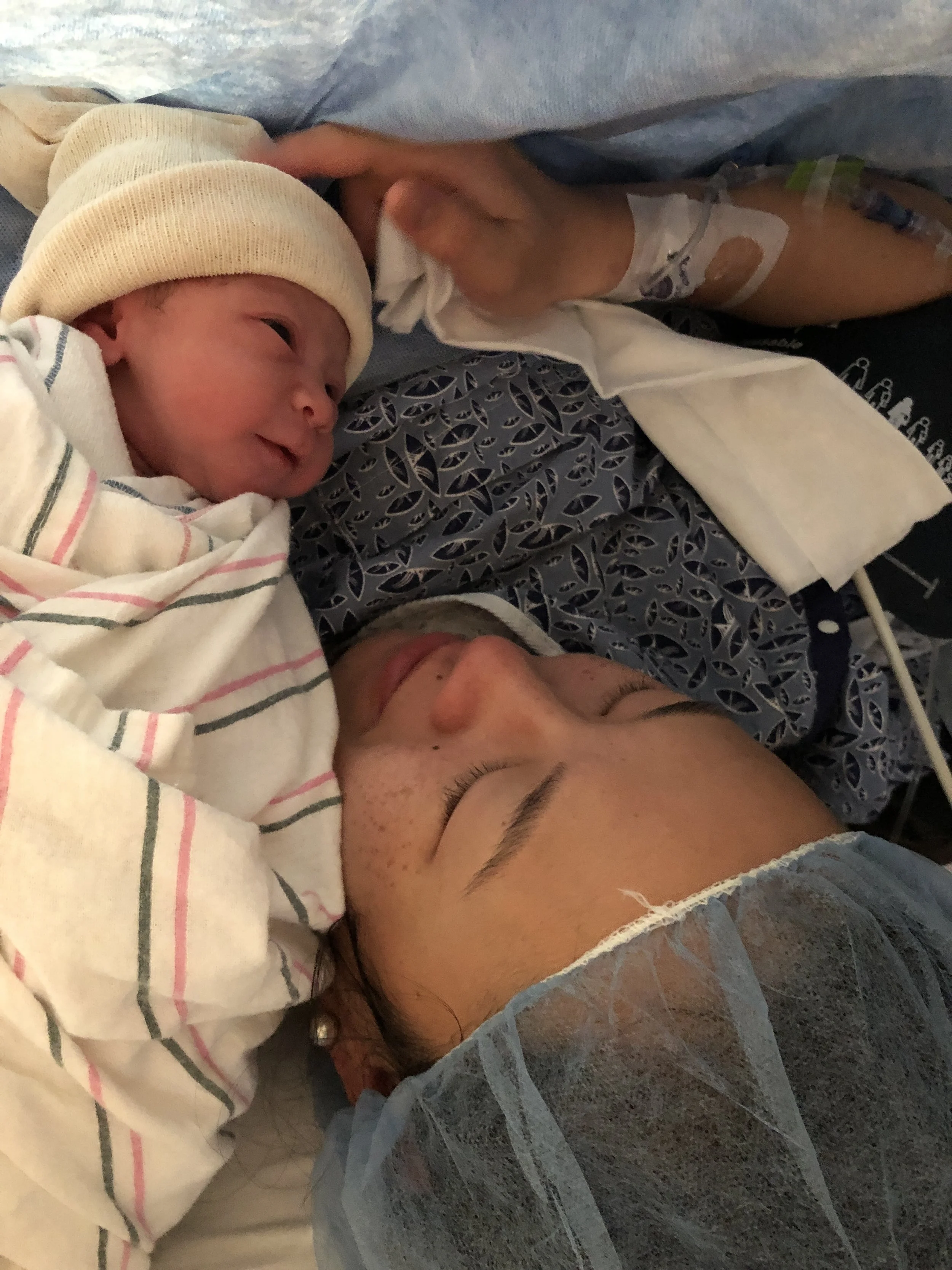 We arrived at the hospital and I was admitted at 4 cm. I had my music going, I was doing my stretches, and everything seemed alright for a bit. Then they really started to pick up and I was like well you know what, “I could go for that epidural right now.” I ended up getting it at 6 cm at 7:00 am and took some time to sleep and relax. By 10:00 am I was 10 cm and ready to push. However, Lila’s heart rate dropped twice and about 20 people came into the room with panicked looks on their faces. Alec and I locked eyes and I immediately felt fear and dread. Were we going to lose our baby? Would anything happen to me? Our doula explained it was up to us to make the decision about a C-section but a decision needed to be made quickly. So I signed the papers in an emotionally hazy drug fog. They wheeled me into the operating room and Alec had to wait outside - thanks Covid October 2020👍🏼